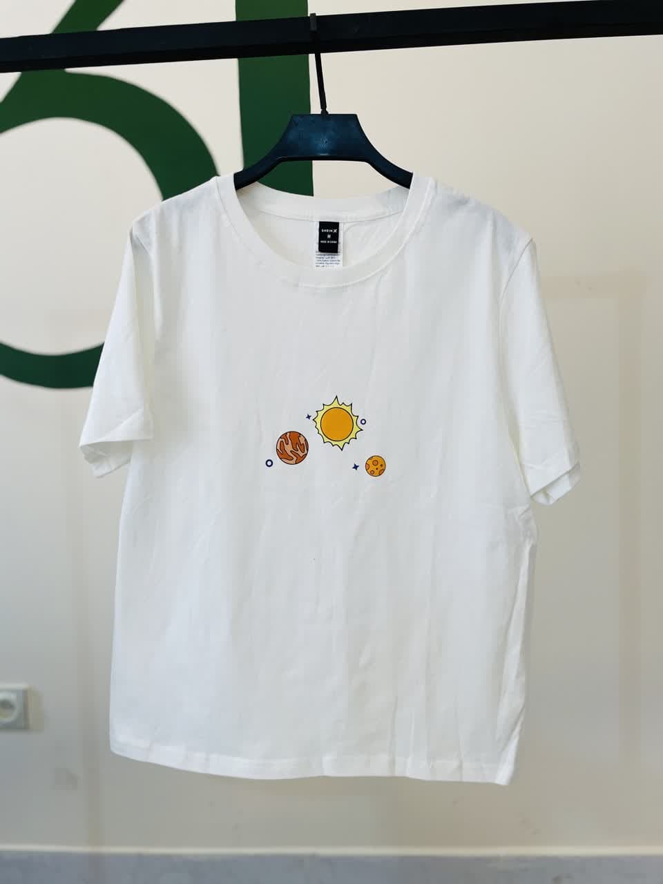 تیشرت سفید زنانه شین با طرح سیاره و خورشید – اسپرت و راحت کد: ۴۰۳