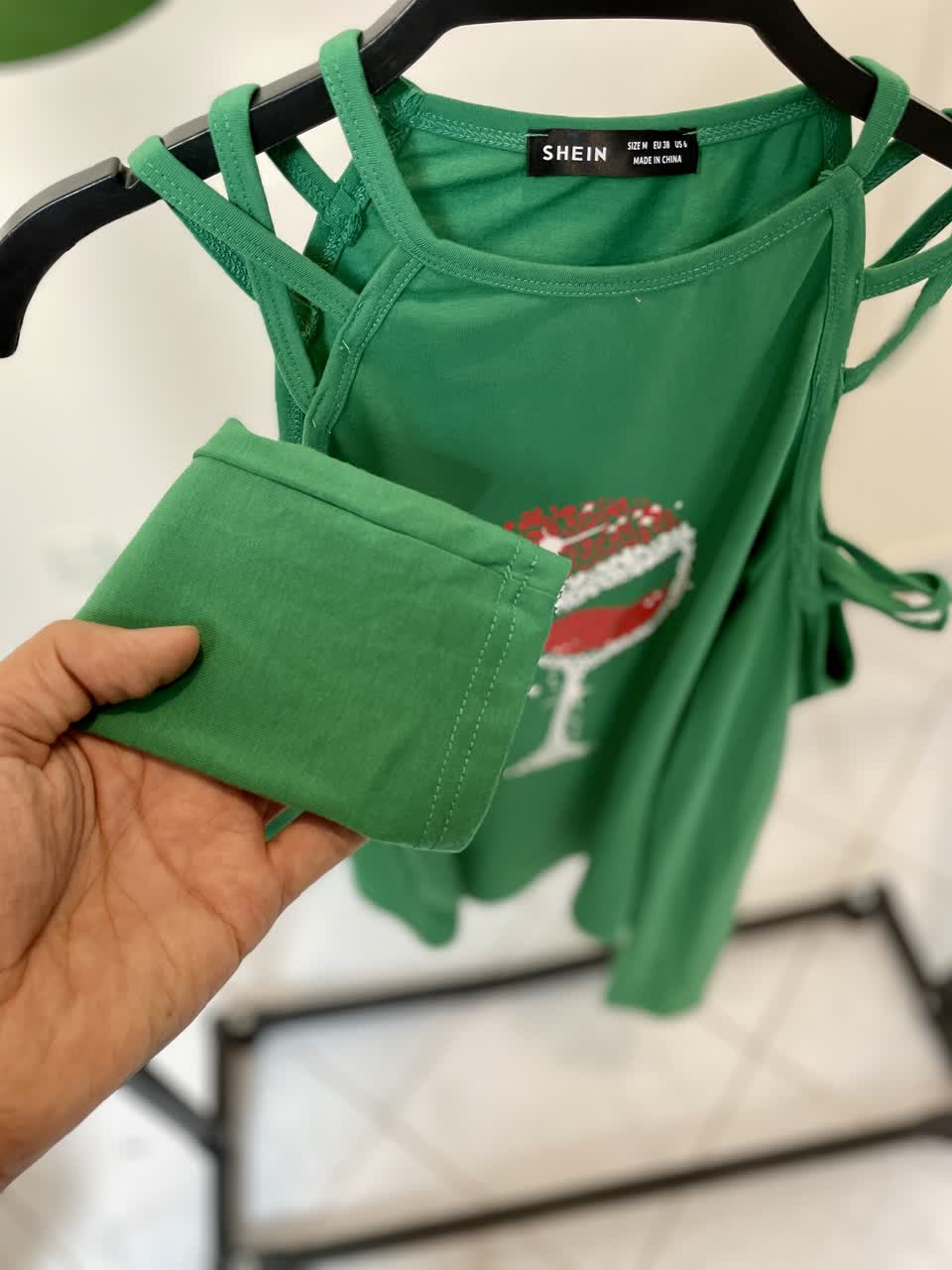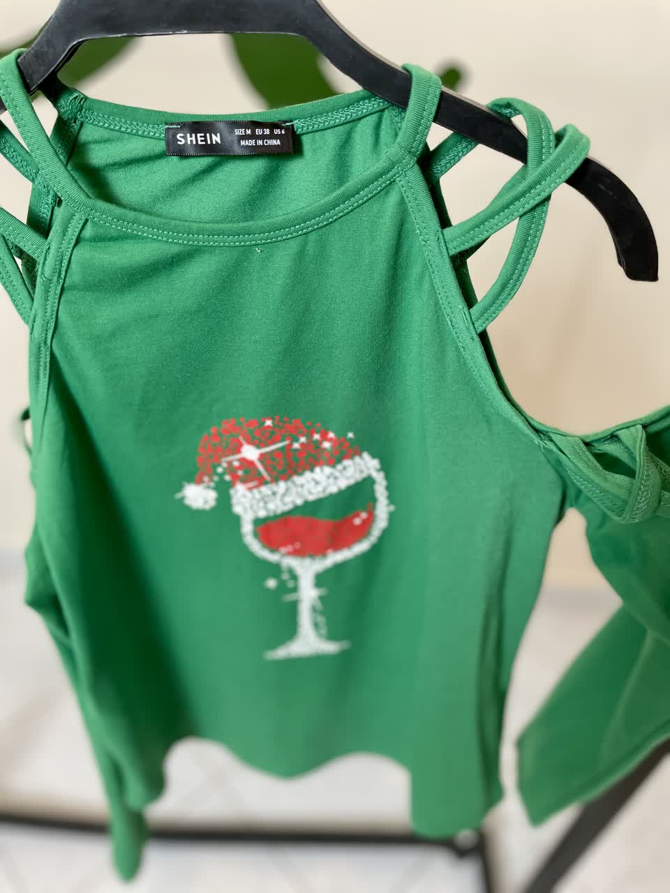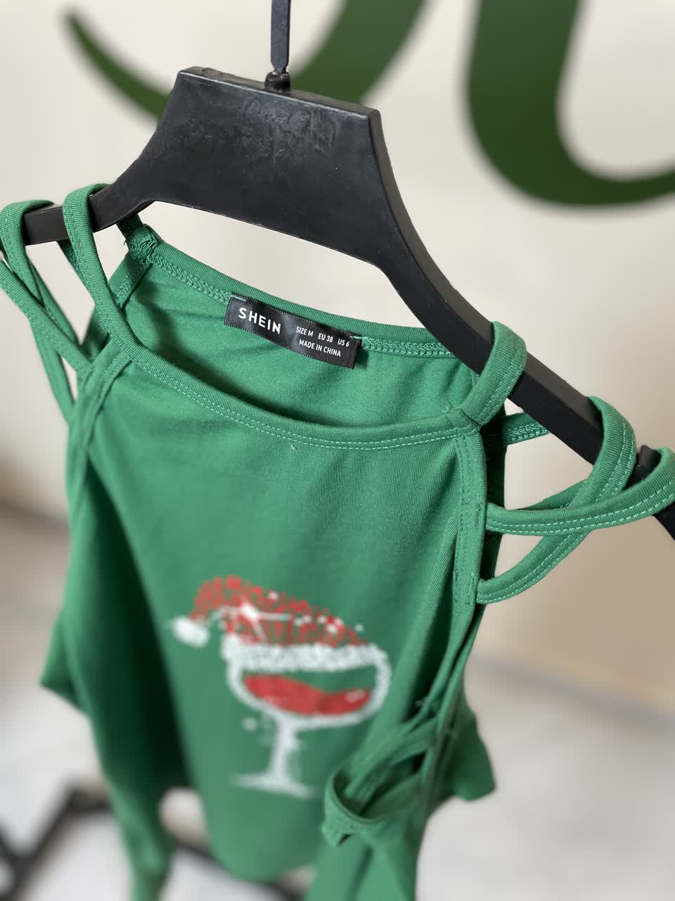 تاپ زنانه سبز بندی طرح جام کریسمسی | SHEIN کد: 443