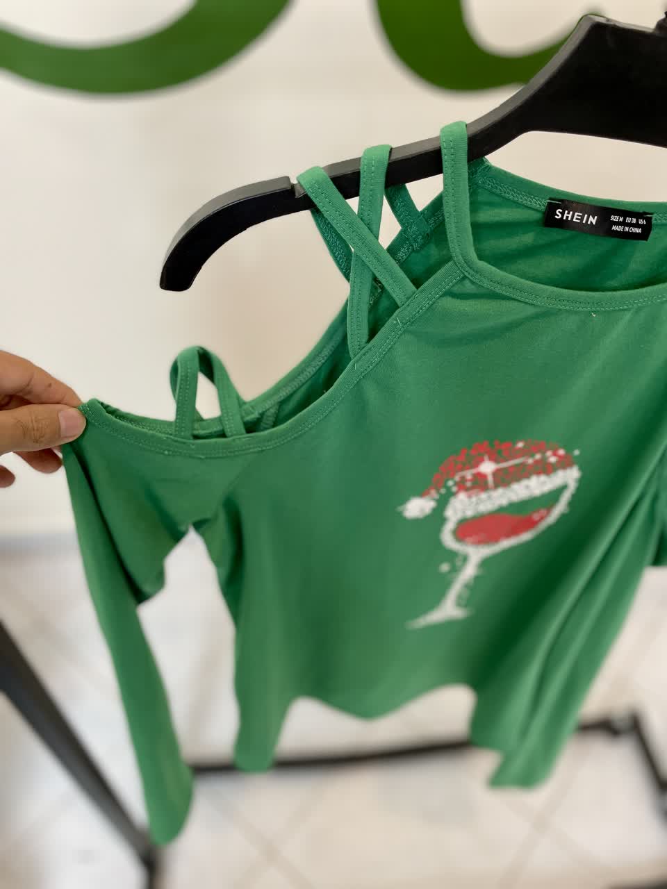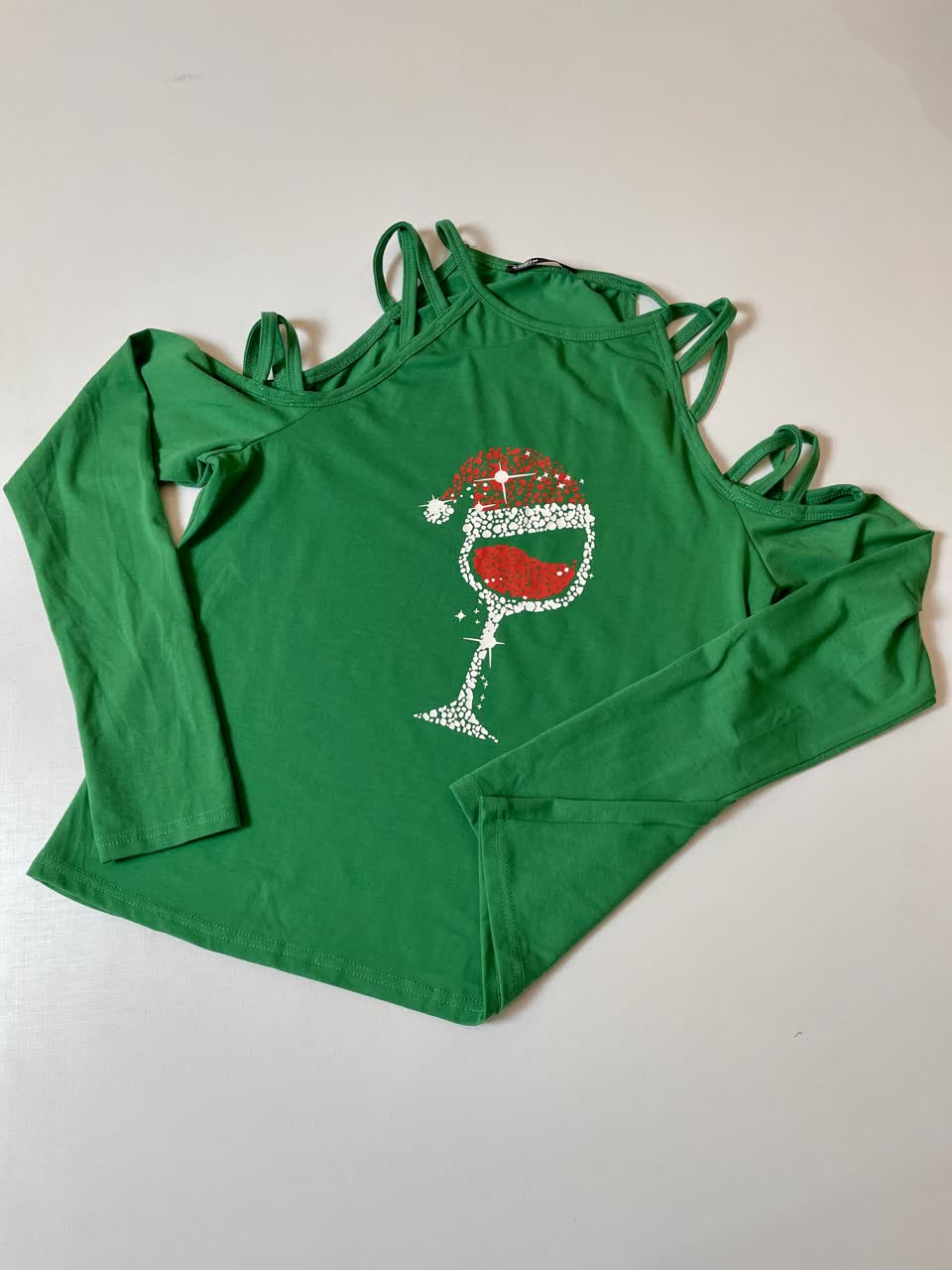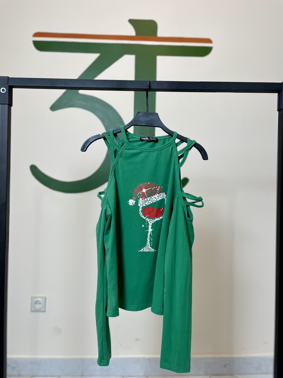 تاپ زنانه سبز بندی طرح جام کریسمسی | SHEIN کد: 443