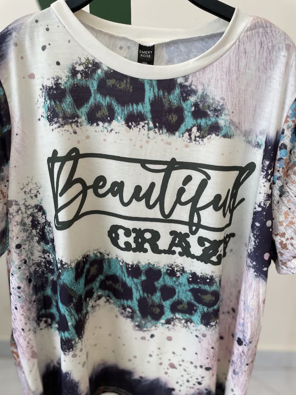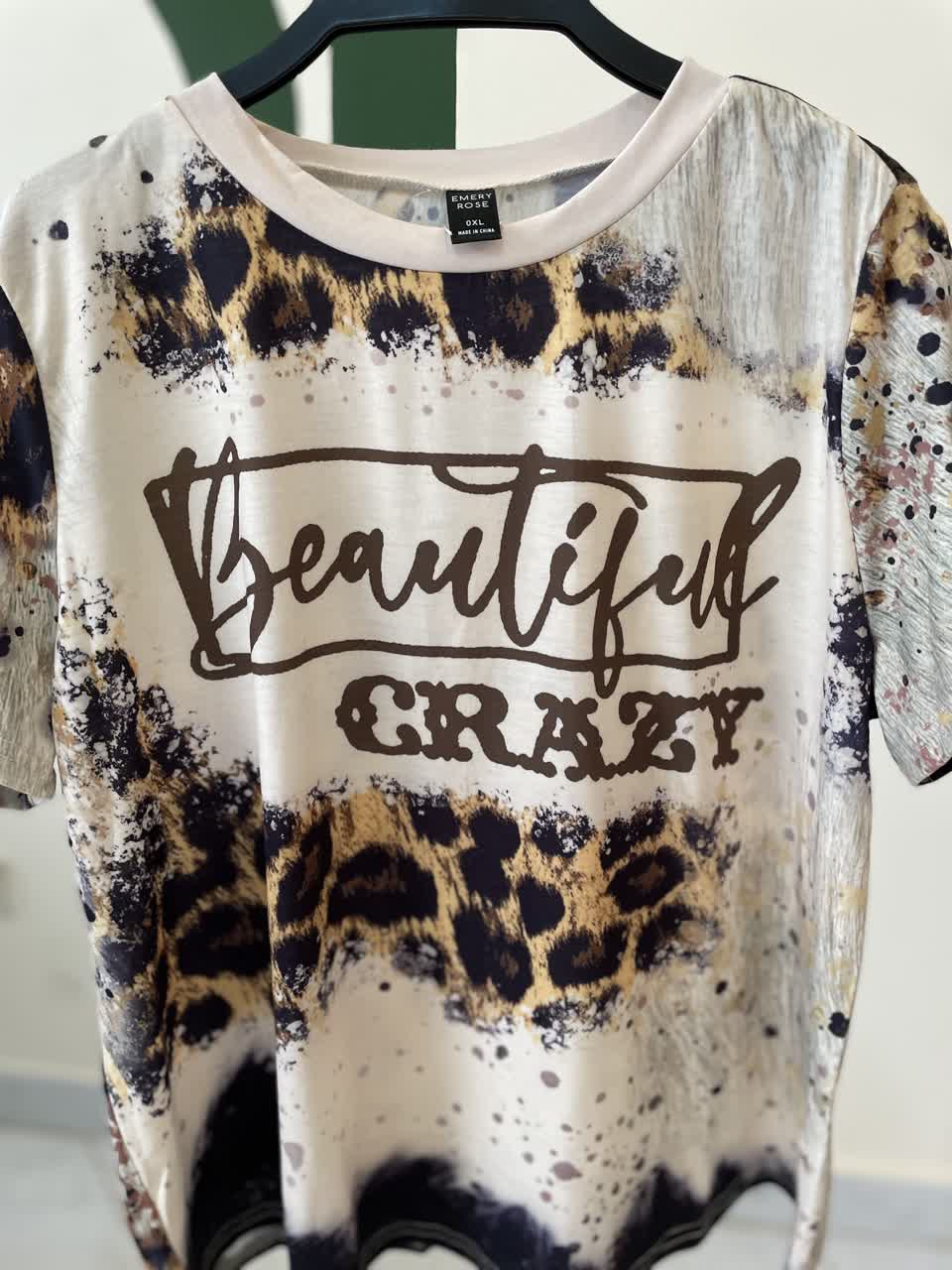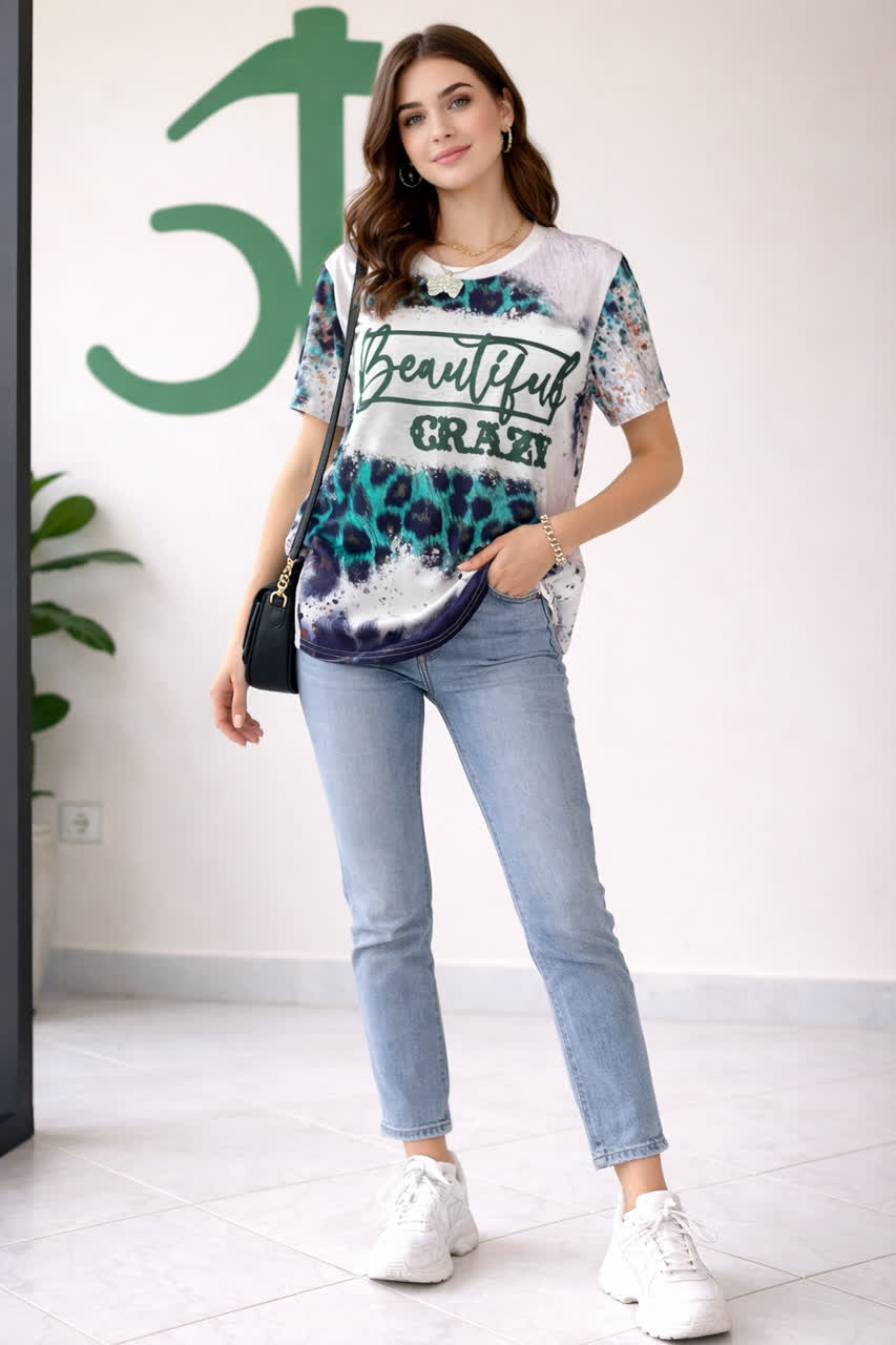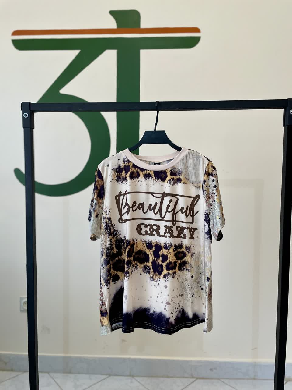 این تیشرت زنانه طرح پلنگی Beautiful Crazy با ترکیب رنگ کرم، مشکی و چاپ خاص پلنگی، یه گزینه عالی برای استایل روزمره، کژوال و اسپرت محسوب میشه. نوشته جذاب روی کار باعث میشه ساده نباشه و به چشم بیاد.