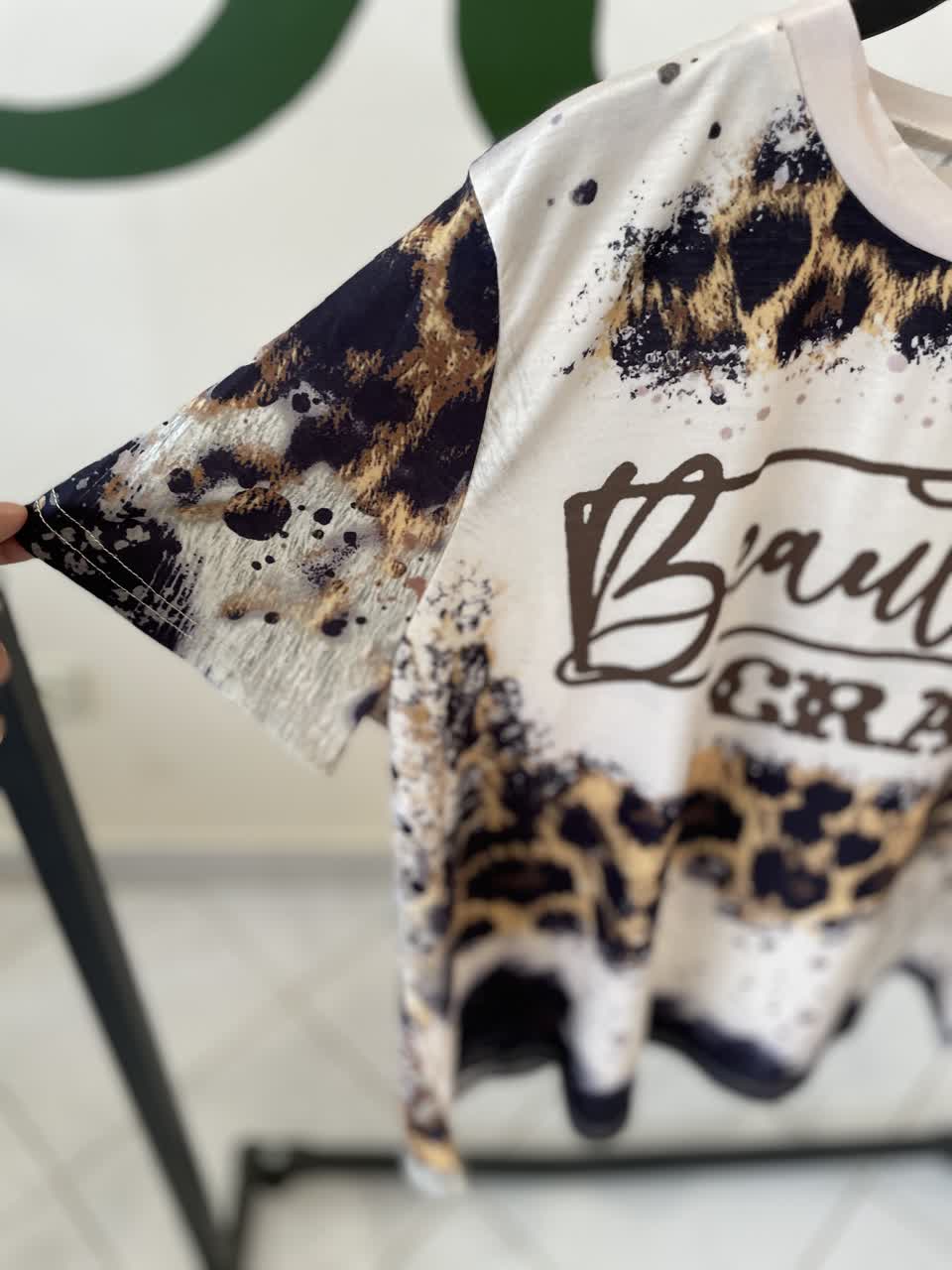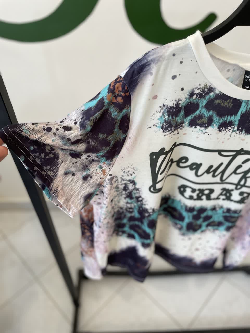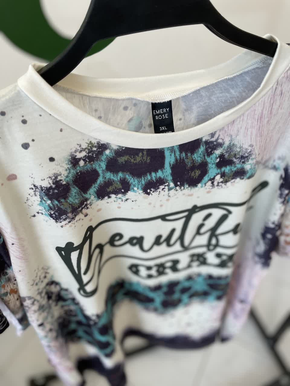 این تیشرت زنانه طرح پلنگی Beautiful Crazy با ترکیب رنگ کرم، مشکی و چاپ خاص پلنگی، یه گزینه عالی برای استایل روزمره، کژوال و اسپرت محسوب میشه. نوشته جذاب روی کار باعث میشه ساده نباشه و به چشم بیاد.